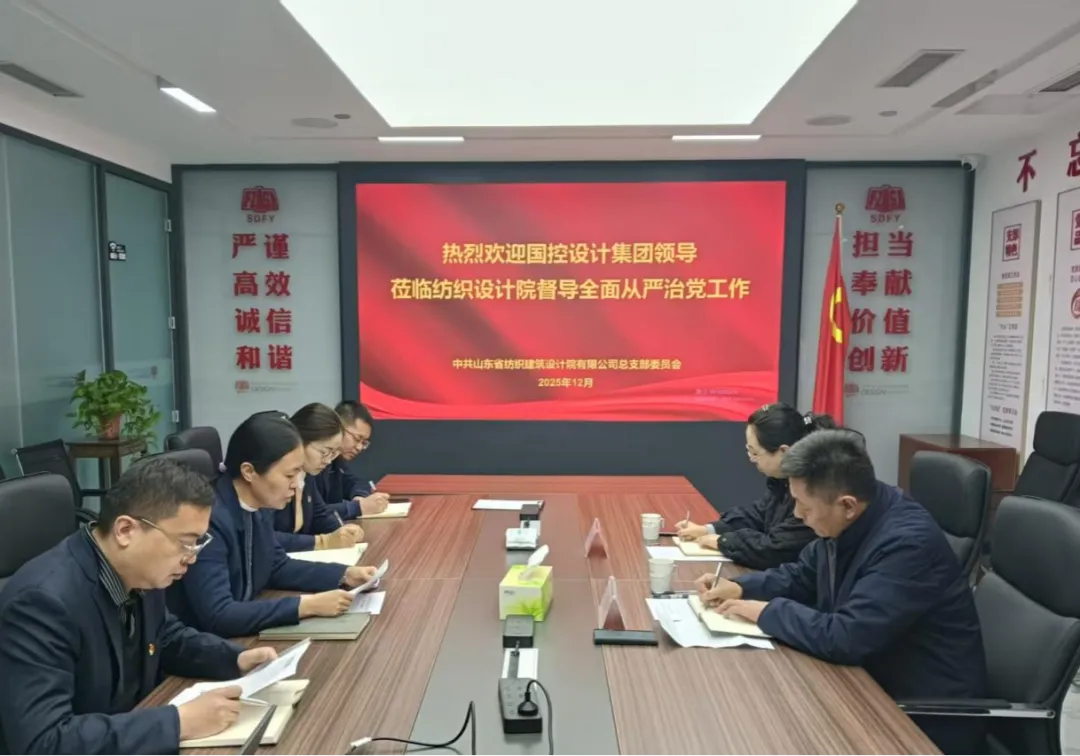 12月4日,山東省國控設計集團有限公司黨委副書記、董事、總經(jīng)理王風光一行到紡織設計院開展落實全面從嚴治黨主體責任情況督導調(diào)研,并全程列席指導紡織設計院黨總支會議。